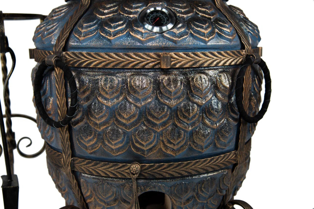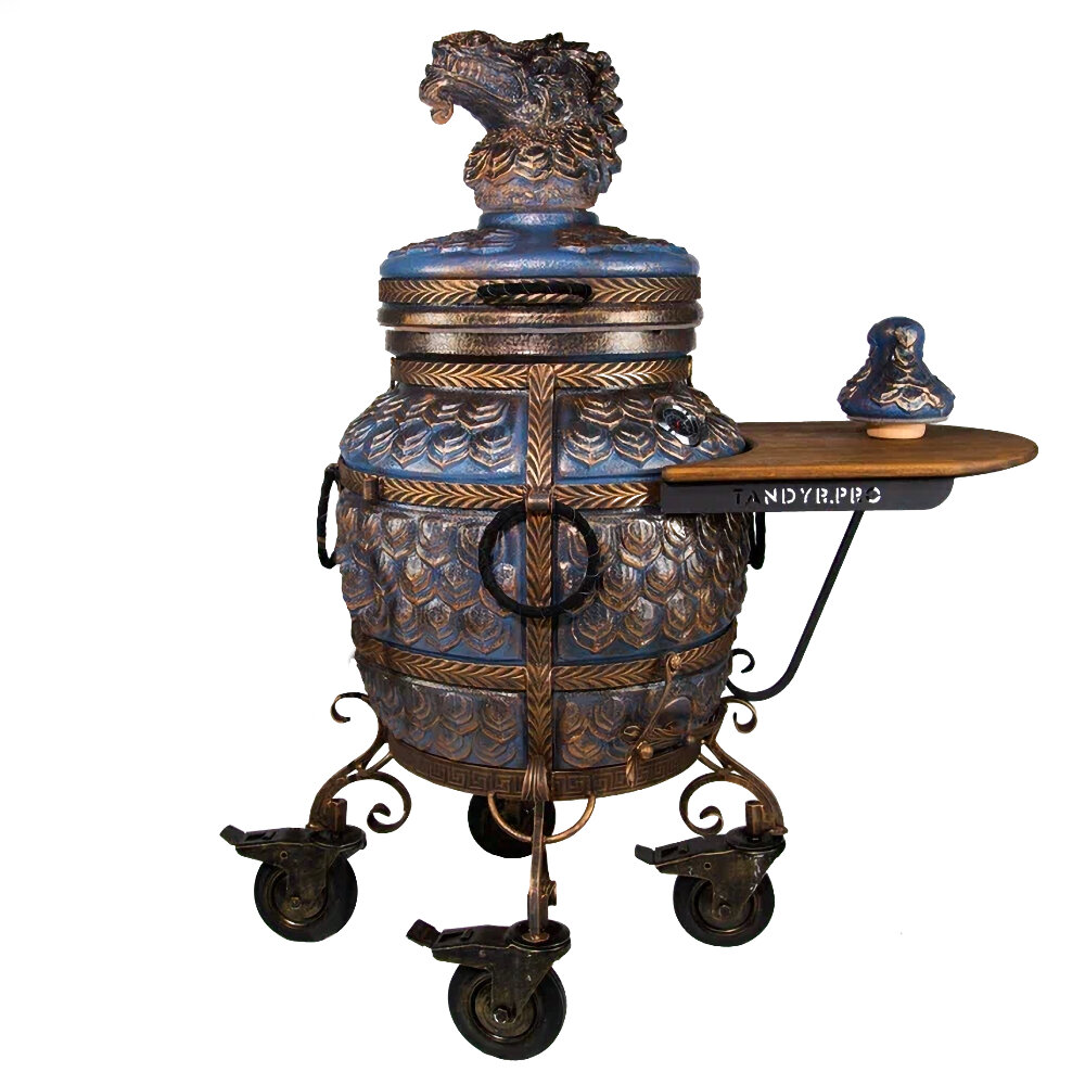 Тандыр "ЭКОтандыр-Шёлковый-путь" с откидной крышкой и столиком, на колёсах, синий информация: