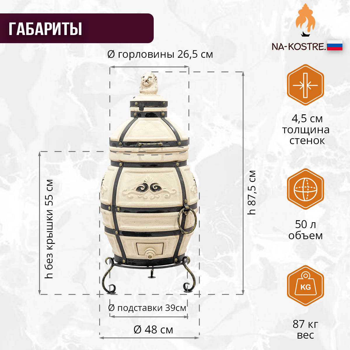 Аполлон с откидной крышкой - тандыр для дачи средний с термометром - 50л (требует установки), Технокерамика.