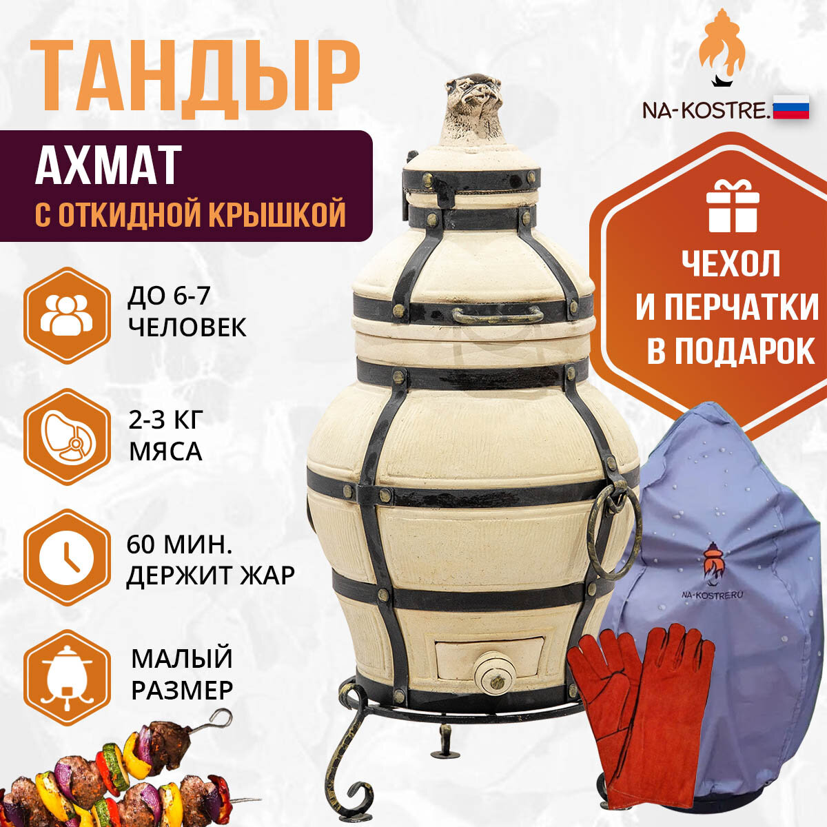 10 цен на Тандыр Ахмат с откидной крышкой и подставкой (Технокерамика)+перчатки и чехол