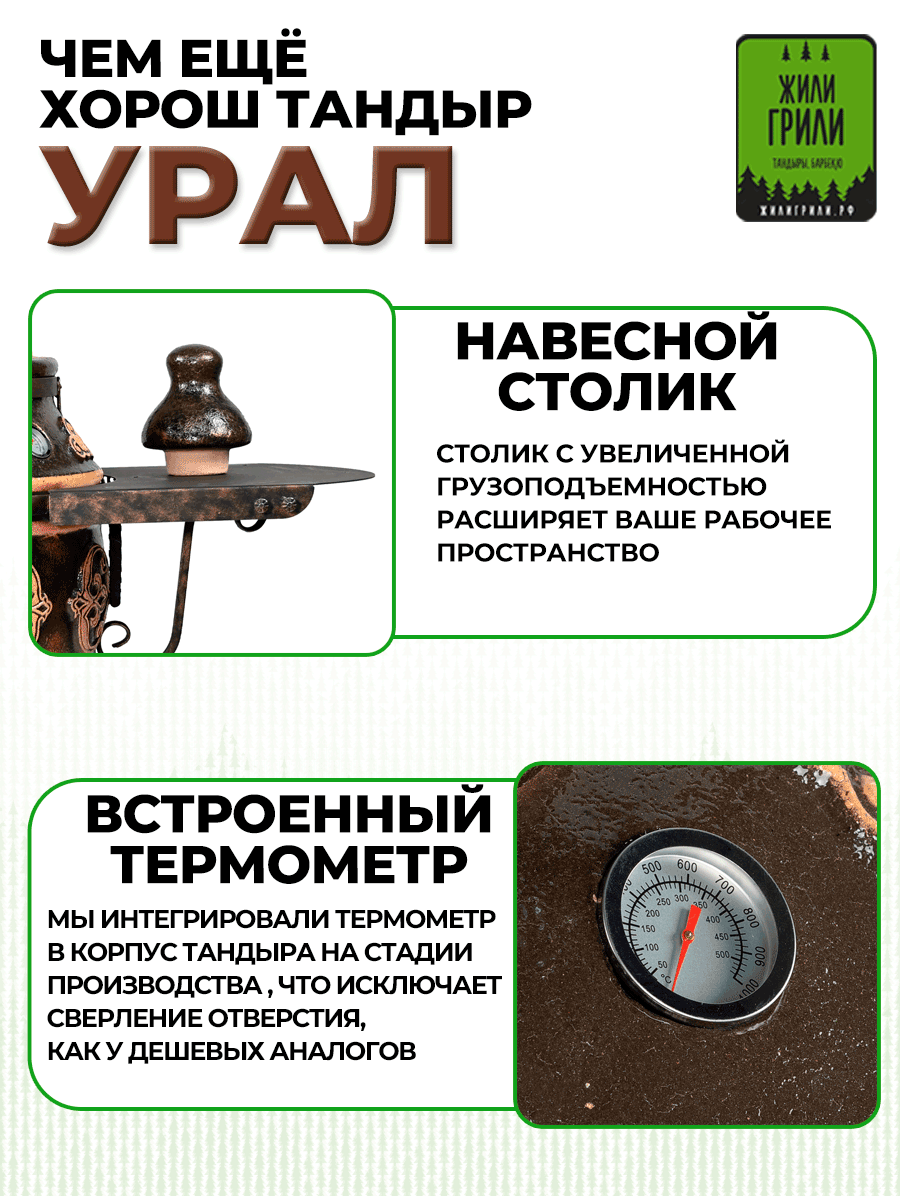 Тандыр с откидной крышкой Урал, со столиком, на колесах, 50 л, с термометром, цвет черный патина информация: