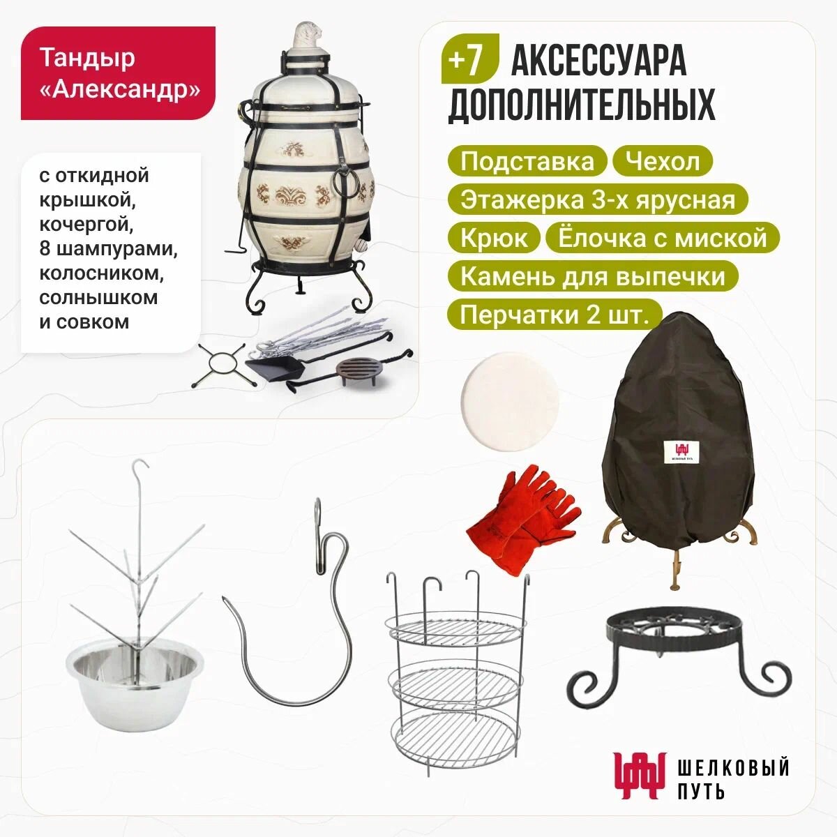 10 цен на Набор "Стандарт": Тандыр "Александр" с откидной крышкой + аксессуары