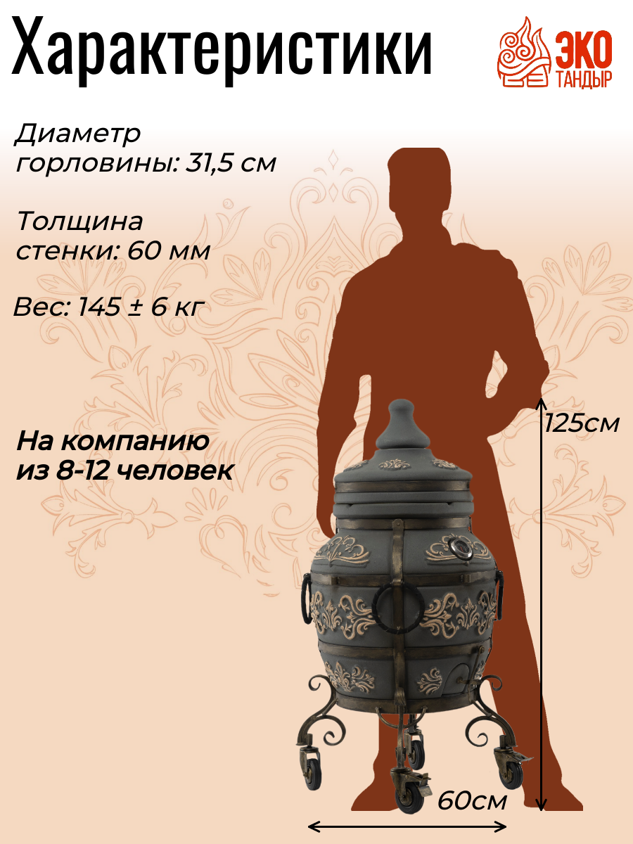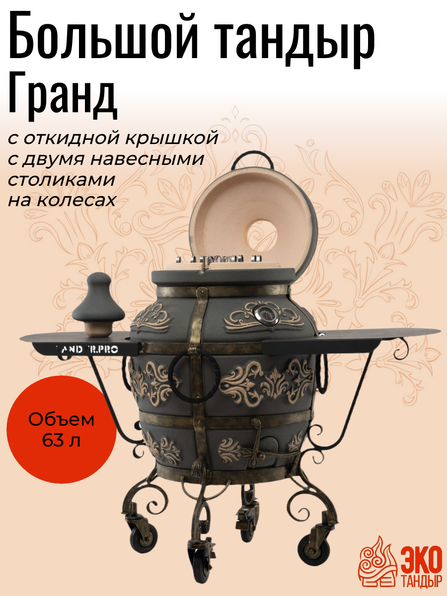 Тандыр ЭкоТандыр Гранд с откидной крышкой, c 2-мя столами, на колесах, цвет графит / большой тандыр для семьи информация: