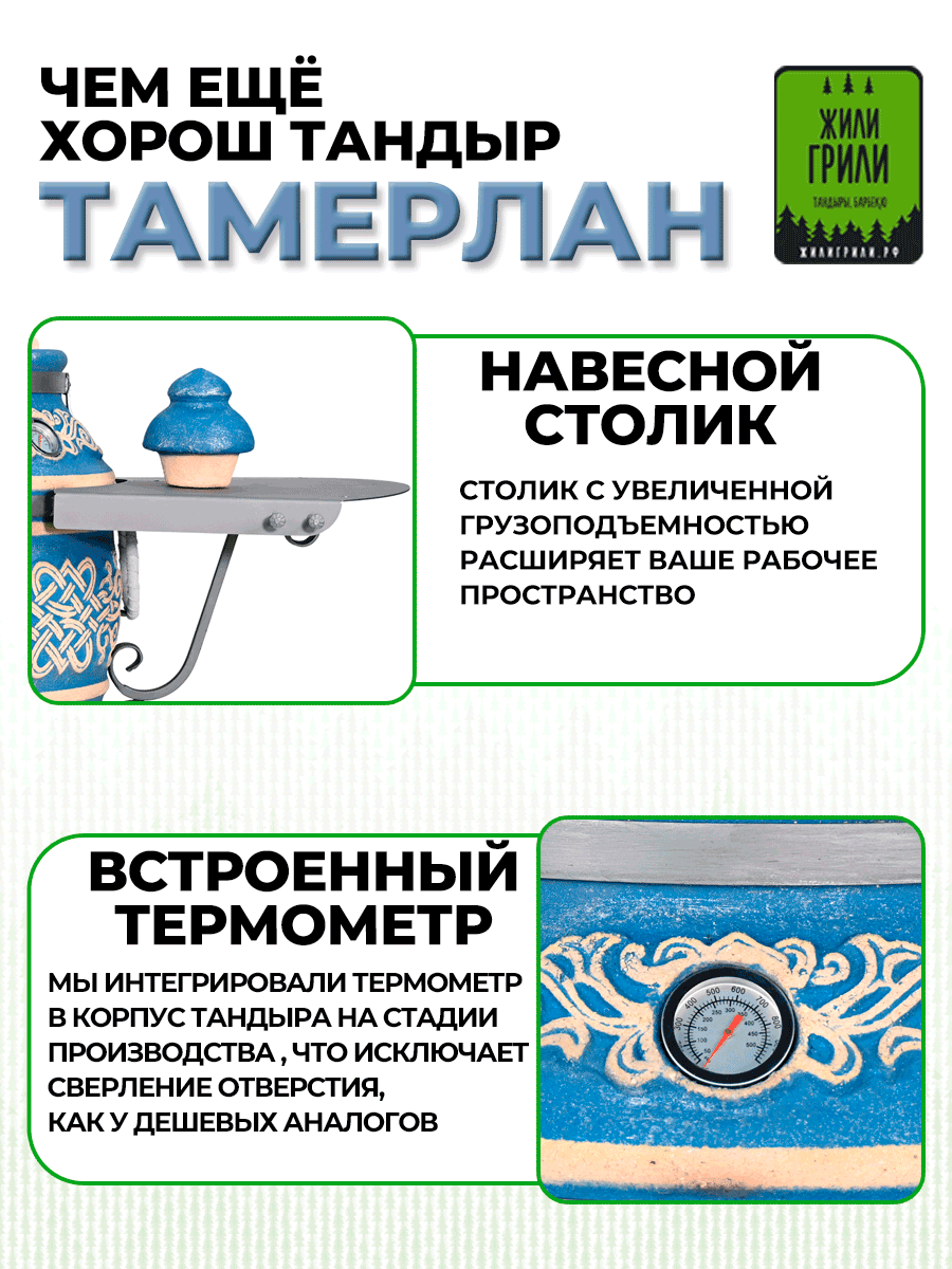 Мы выбрали 10 лучших цен на Тандыр с откидной крышкой Тамерлан, навесной столик, съёмные колёса, термометр, 50 л, цвет морская волна патина. Перед тем как купить Тандыр с откидной крышкой Тамерлан, навесной столик, съёмные колёса, термометр, 50 л, цвет морская волна патина посмотрите найденные предложения из Яндекс Маркета и других сайтов на основе XML фидов.