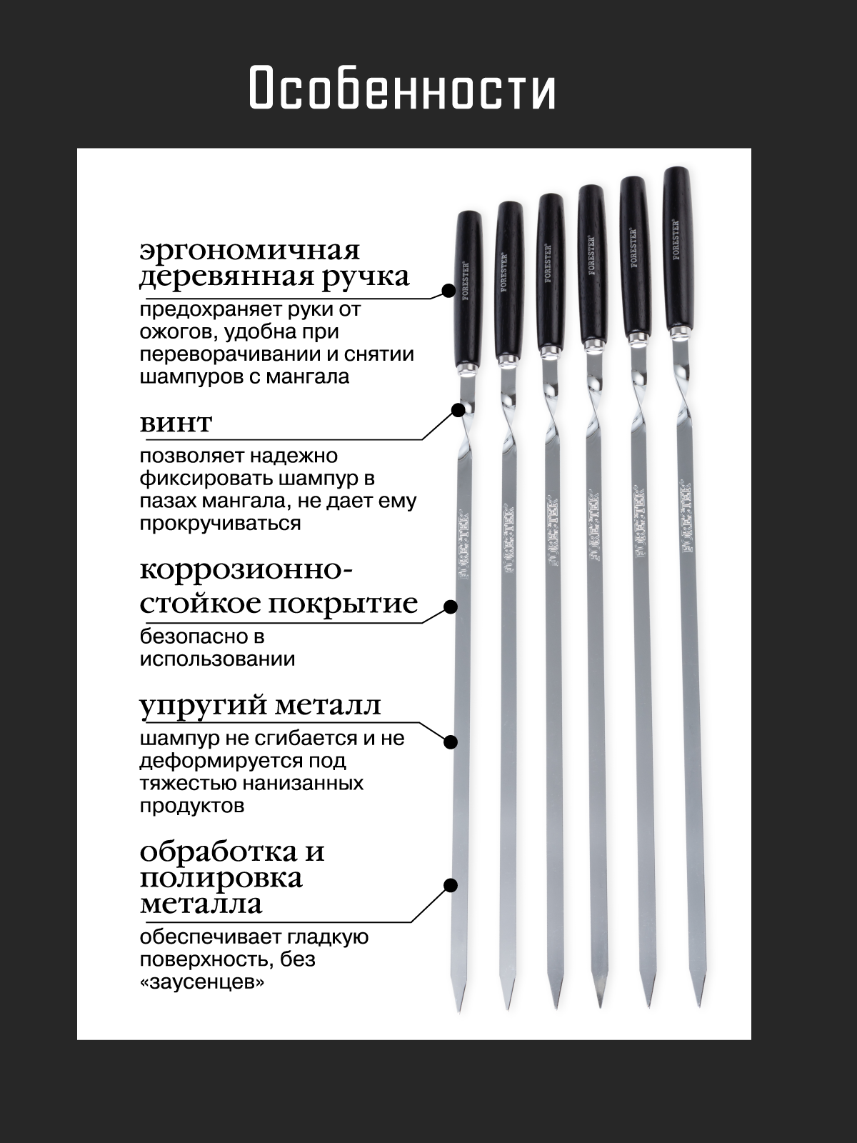 Отзывы на Набор шампуров с деревянными ручками Forester ON больших в ЧЕХЛЕ (6 шт), 55 см, с деревянными ручками