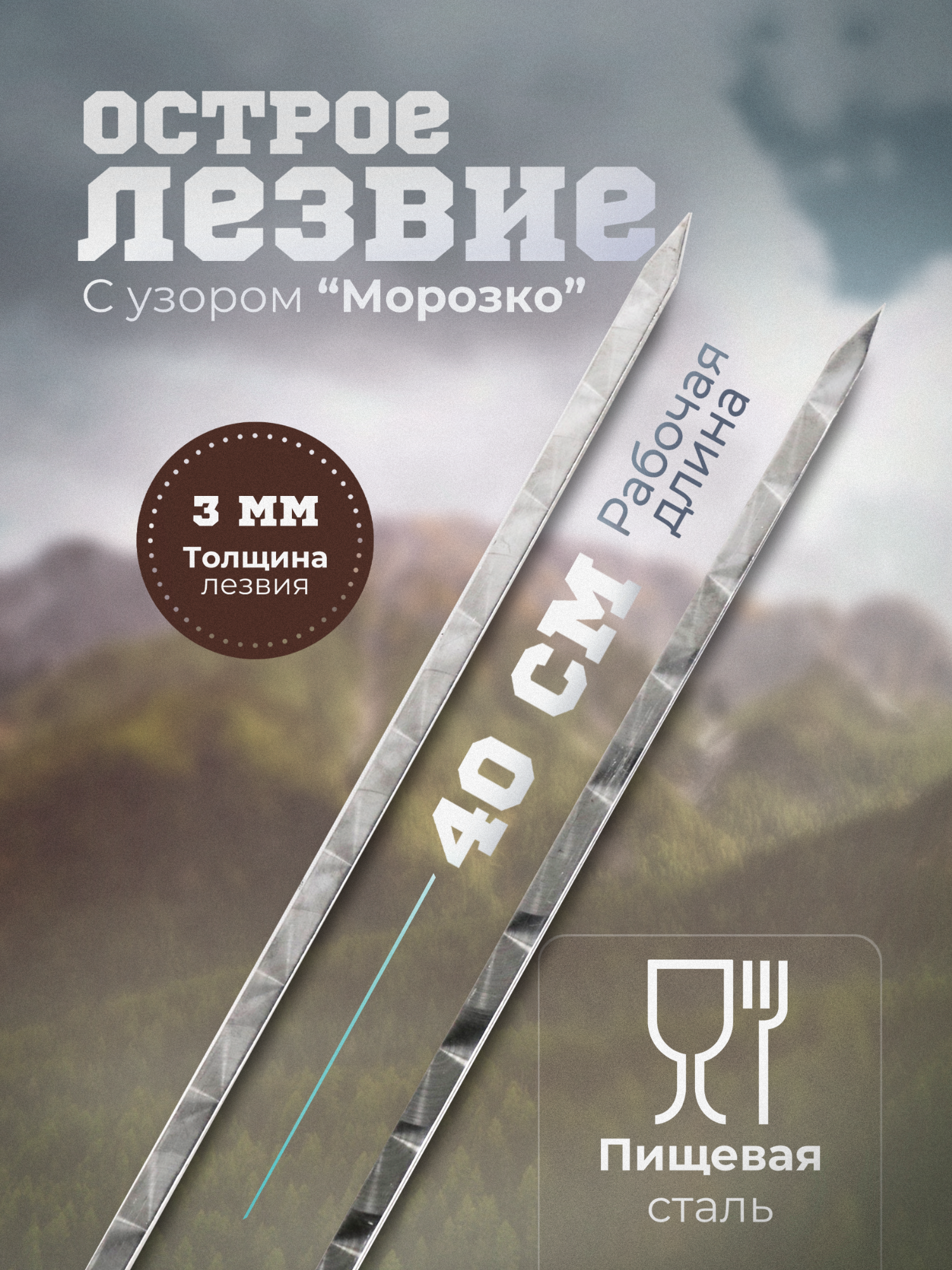 Шампуры NV_STORE, 40 см, 6 штук, деревянные ручки, металлические лезвия