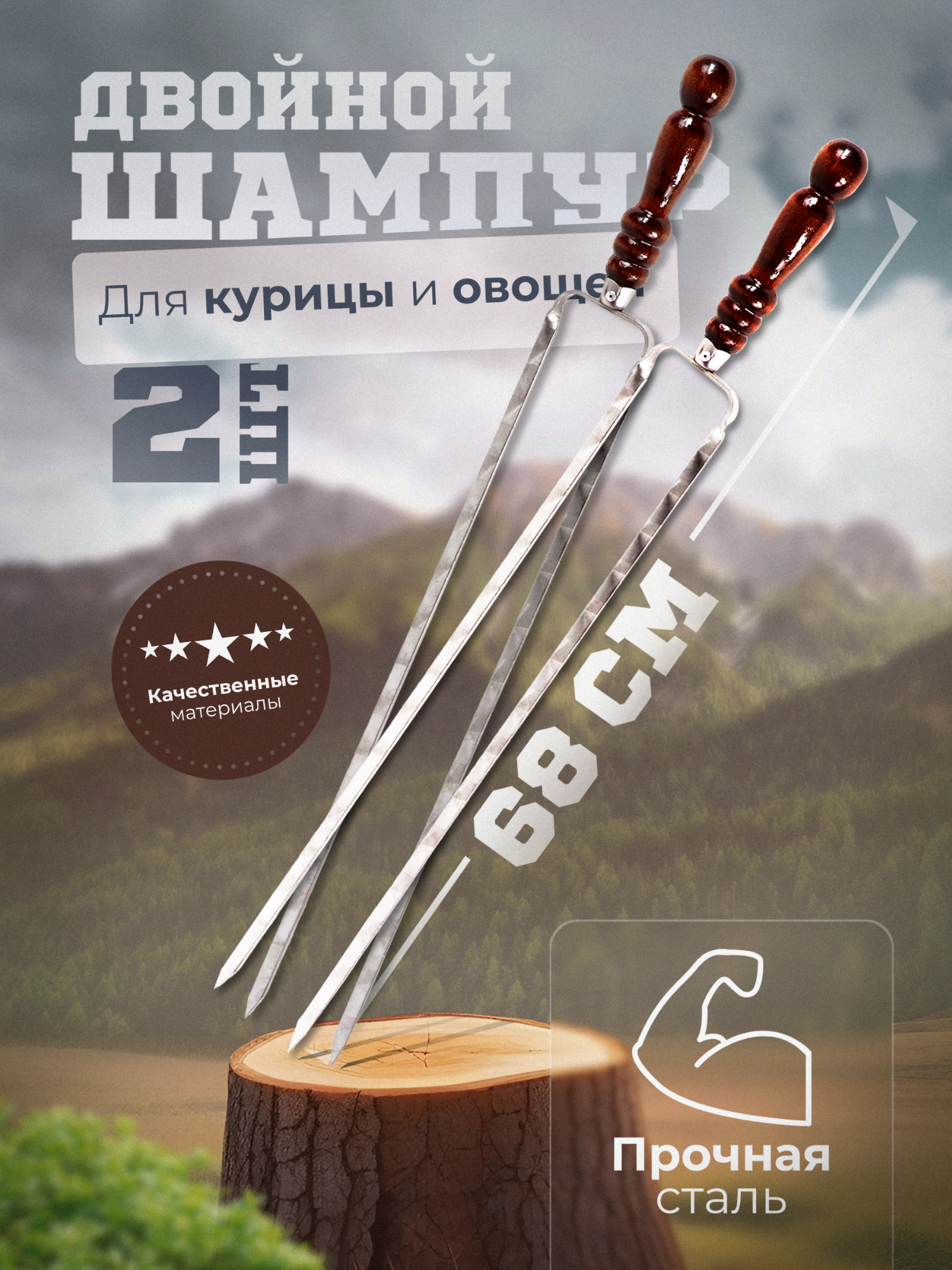 Двойной шампур с деревянной ручкой, шампура для овощей, 2 шампура информация: