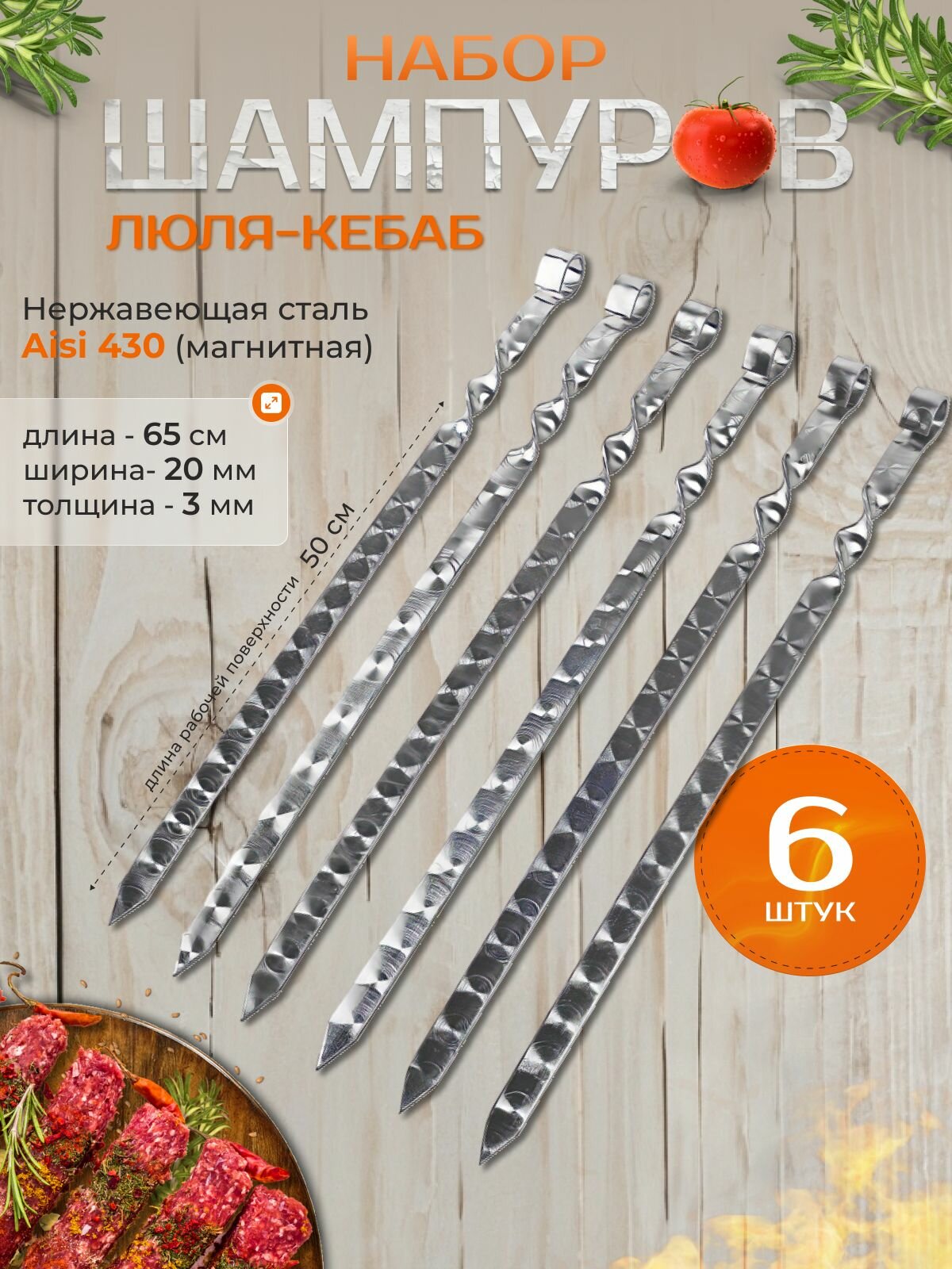 Шампуры Люля-кебаб нержавеющая сталь 65 см информация: