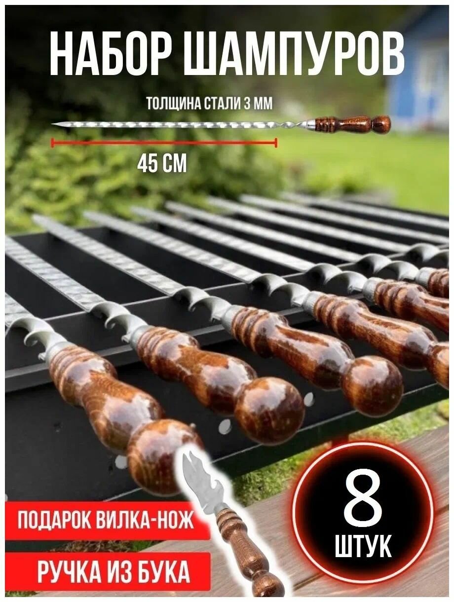 10 цен на Набор шампуров длина лезвия 45 см, 8 шт с деревянной ручкой подарочный