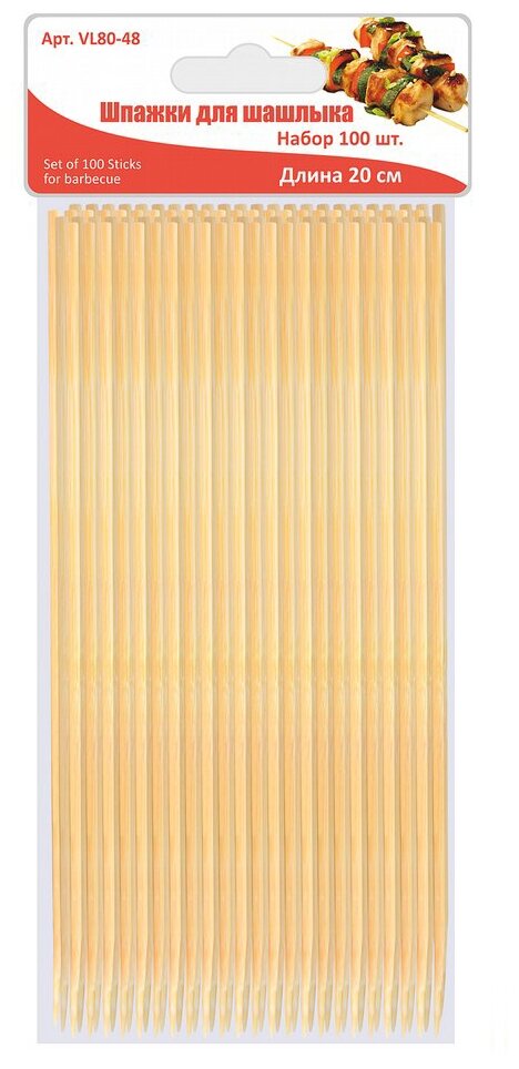 Шпажки для шашлыка, бамбуковые, набор 100 шт, длина 20 см, толщина 0,3 см. информация: