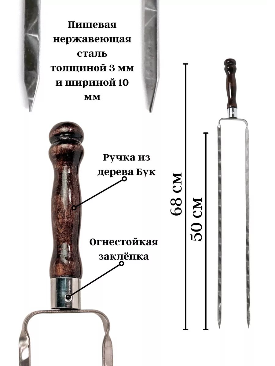 Шампура с деревянной ручкой двойные, набор для шашлыка и овощей и курицы 3 шт. информация: