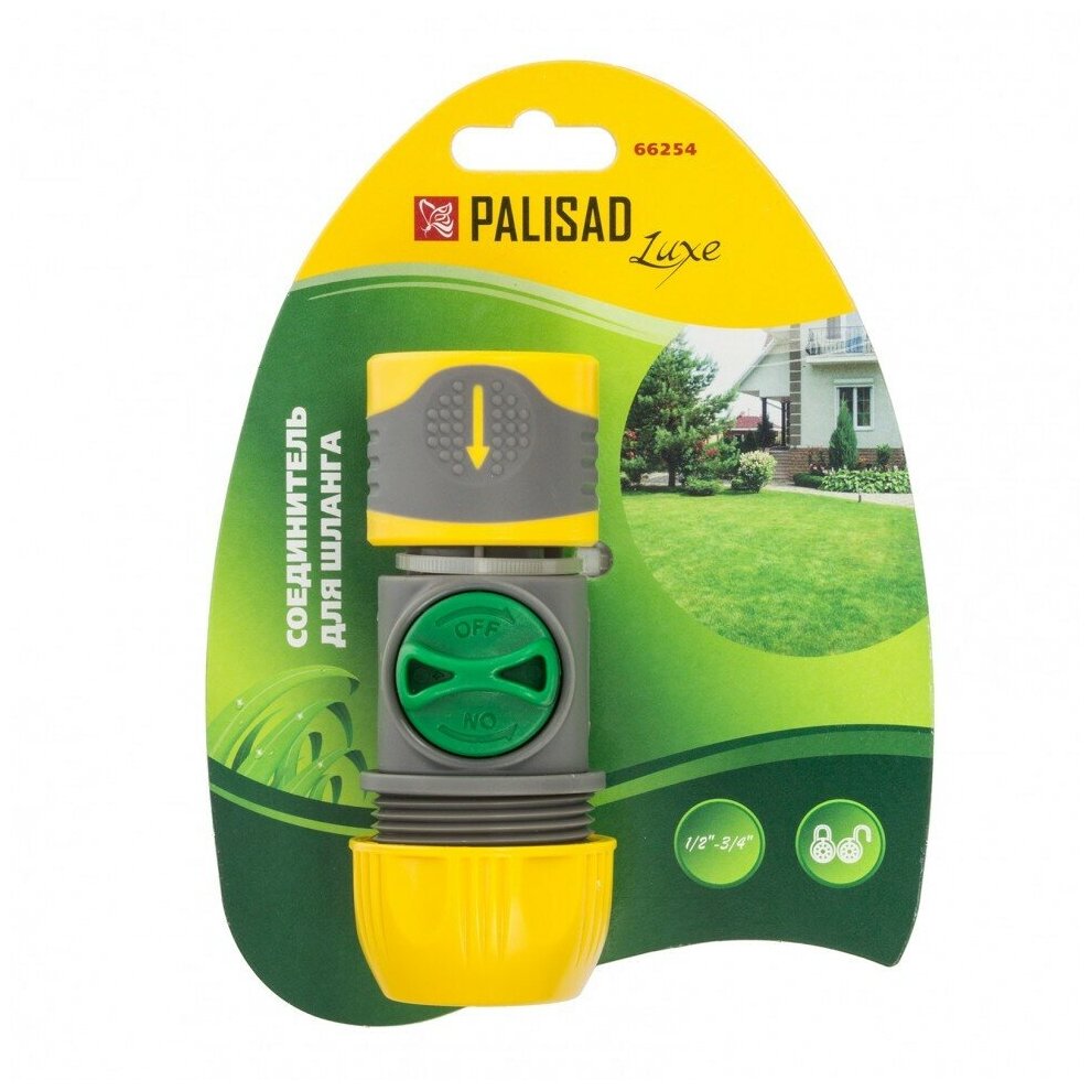 Соединитель пластмассовый, быстросъемный для шланга 3/4, аквастоп, однокомпонентный Palisad Luxe, 66259
