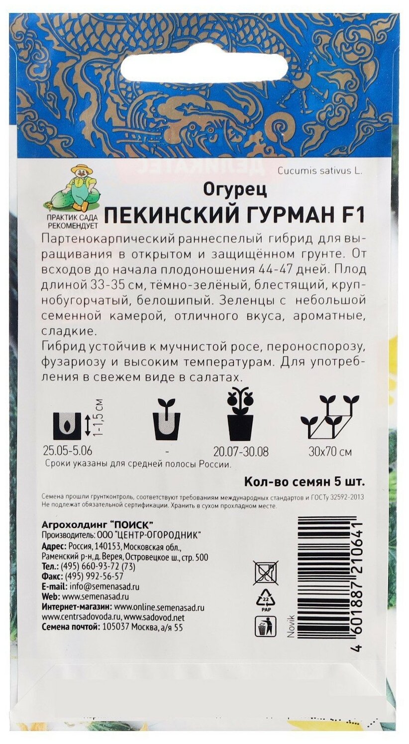Семена Огурец Поиск Пекинский гурман F1, 5 шт, 2г 538 ₽