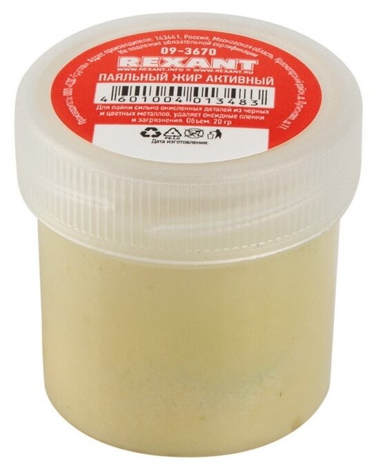 Флюс для пайки REXANT, паяльный жир активный, 20 мл, банка информация: