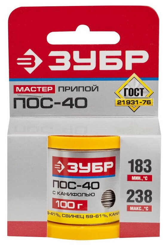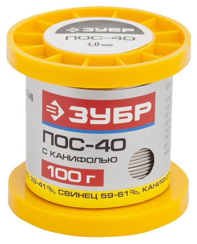 Припой ЗУБР 100гр 1мм трубка пос 40 55451-100-10C информация: