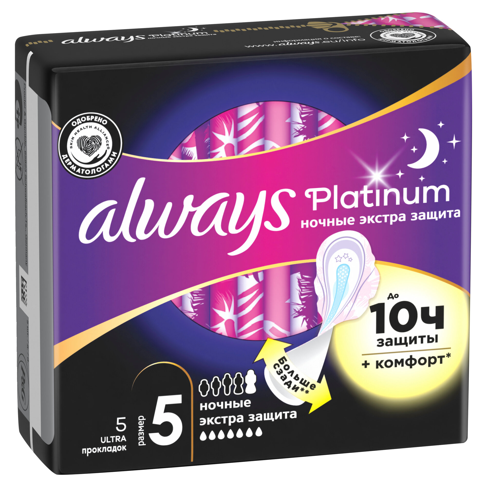 Always Platinum ночные экстра защита прокладки женские размер 5, капли 7, прокладок 5