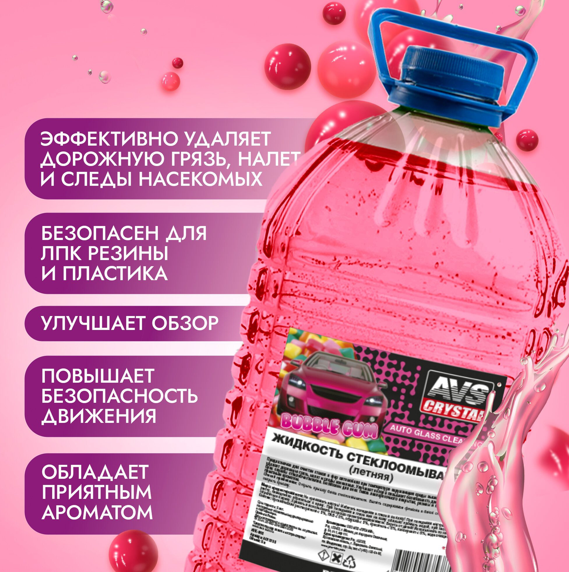 Жидкость стеклоомывателя (лето) (BubbleGum/Бабл гам) (ПЭТ) 5 л AVS AVK-662 информация: