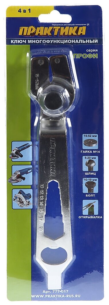 Ключ 30 мм, для прижимной гайки УШМ регулируемый 15-52 мм, 4 в 1, серия Профи ПРАКТИКА 777-017 информация: