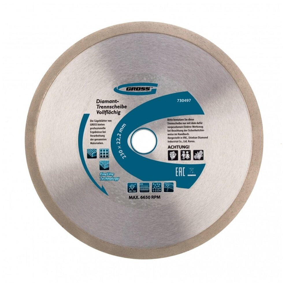 10 цен на Диск алмазный, 230 х 22.2 мм, сплошной, мокрая резка Gross 730497