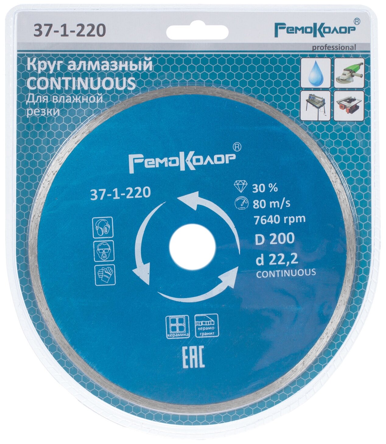 Диск алмазный РемоКолор 200х5х22,2 сплошной керамика 37-1-220 информация: