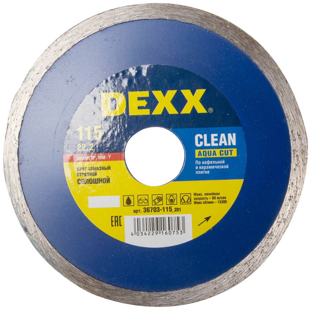 DEXX CLEAN AQUA CUT 115 мм, диск алмазный отрезной сплошной по кафельной и керамической плитке (115х22.2 мм, 5х1.7 мм), 36695-115 (36703-115_z01)