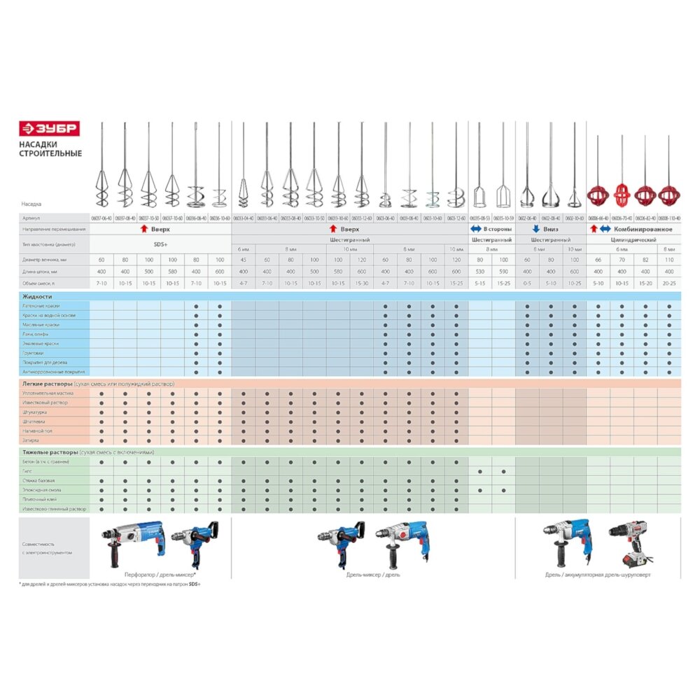 Миксер для песчано-гравийных смесей ЗУБР Профессионал 45х400мм шестигранный хвостовик 06033-04-40 информация:
