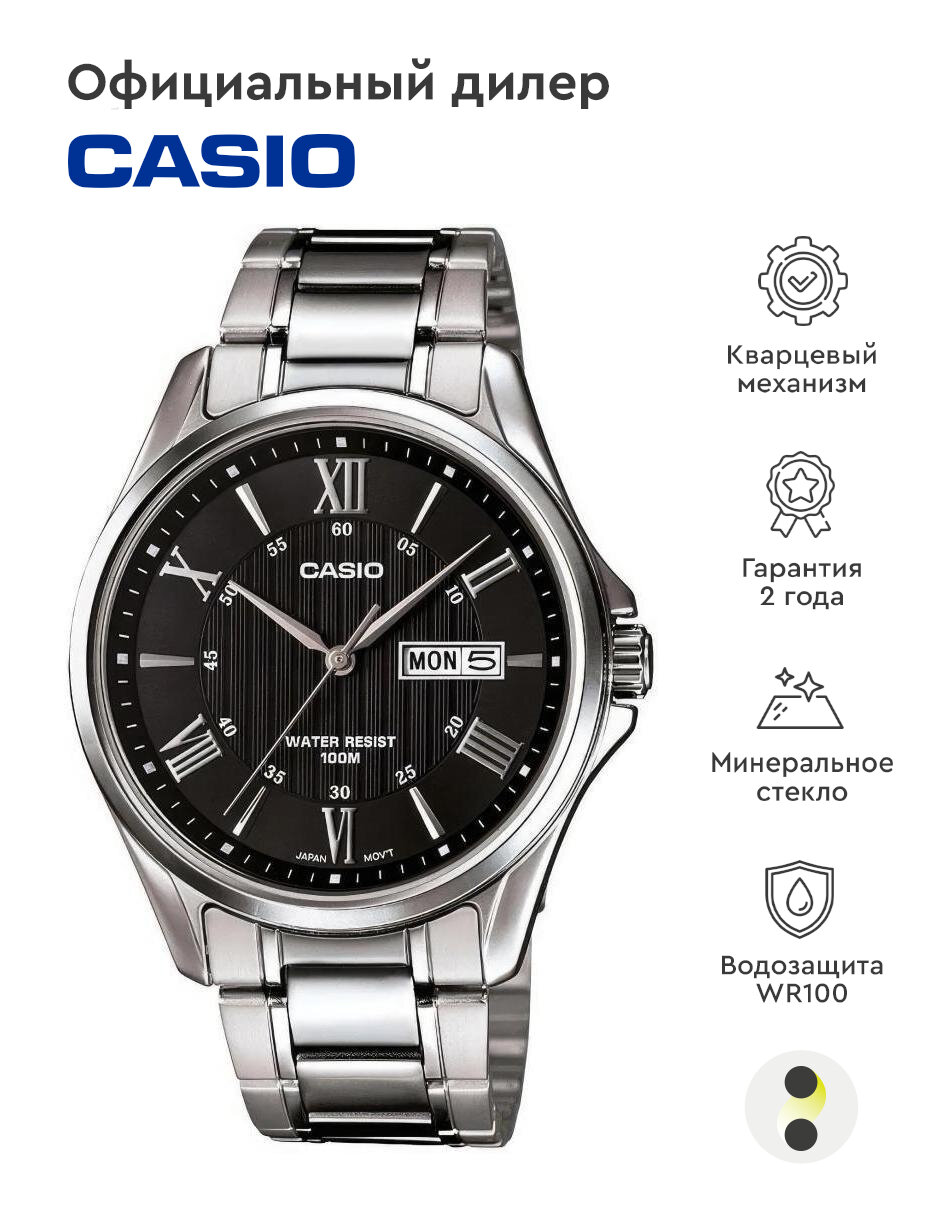 Наручные часы CASIO Collection MTP-1384D-1A, серебряный, черный 9 450 ₽