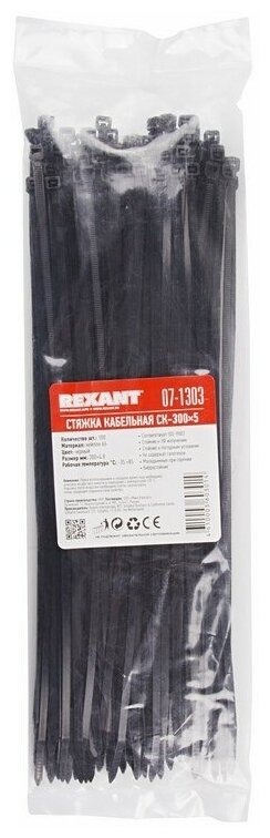 Rexant Хомут nylon 300x5.0 мм 100 шт черный 07-1303 информация: