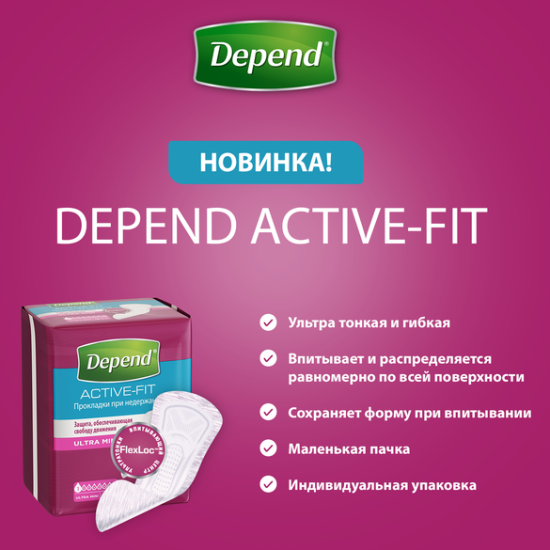 Прокладки при недержании DEPEND Ultra Mini для женщин, 12 шт информация: