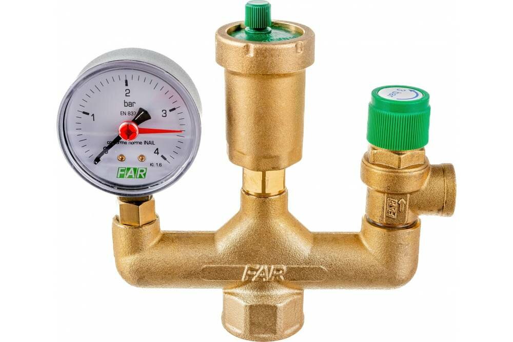 Группа безопасности котла Far 1" ВР: манометр, пред. клапан, авт.воздухоотводчик ( FA 2115)