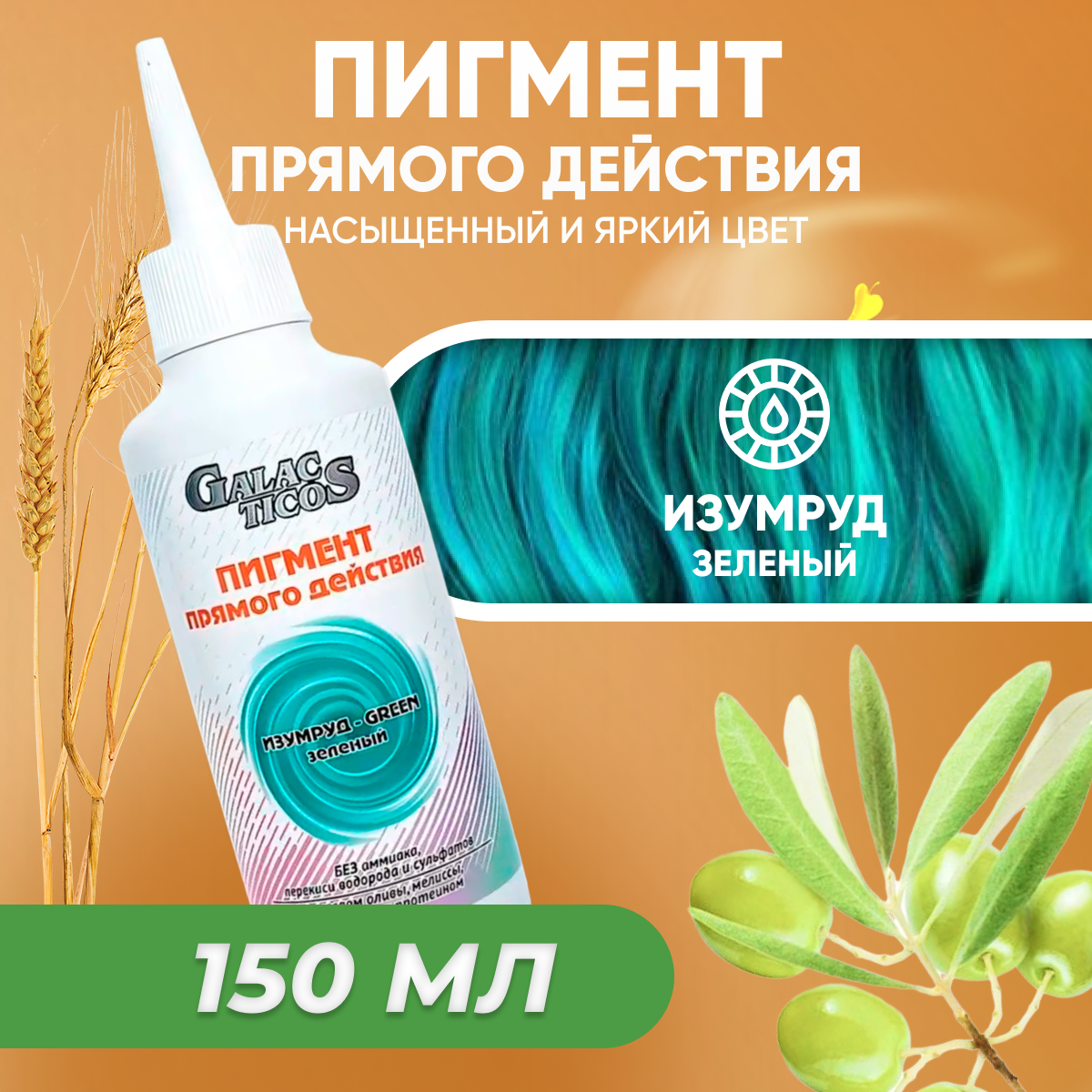Пигмент прямого действия GALACTICOS для волос Изумруд Зеленый 150 мл