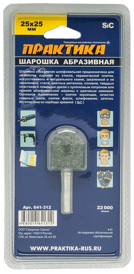 Шарошка абразивная закругленная25х25 мм ПРАКТИКА 641-312 информация: