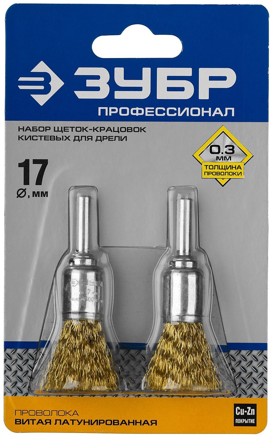 ЗУБР Профессионал. Набор щеток кистевых для дрели, витая стальная латунированная проволока 0,3мм, 17мм, 2шт информация: