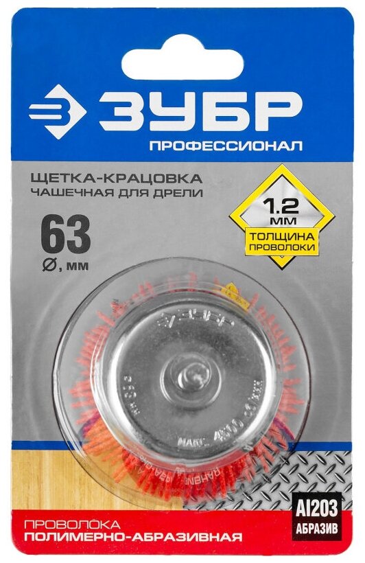 Зубр ""Профессионал"". Щетка чашечная для дрели, нейлоновая проволока с абразивным покрытием, 63мм информация: