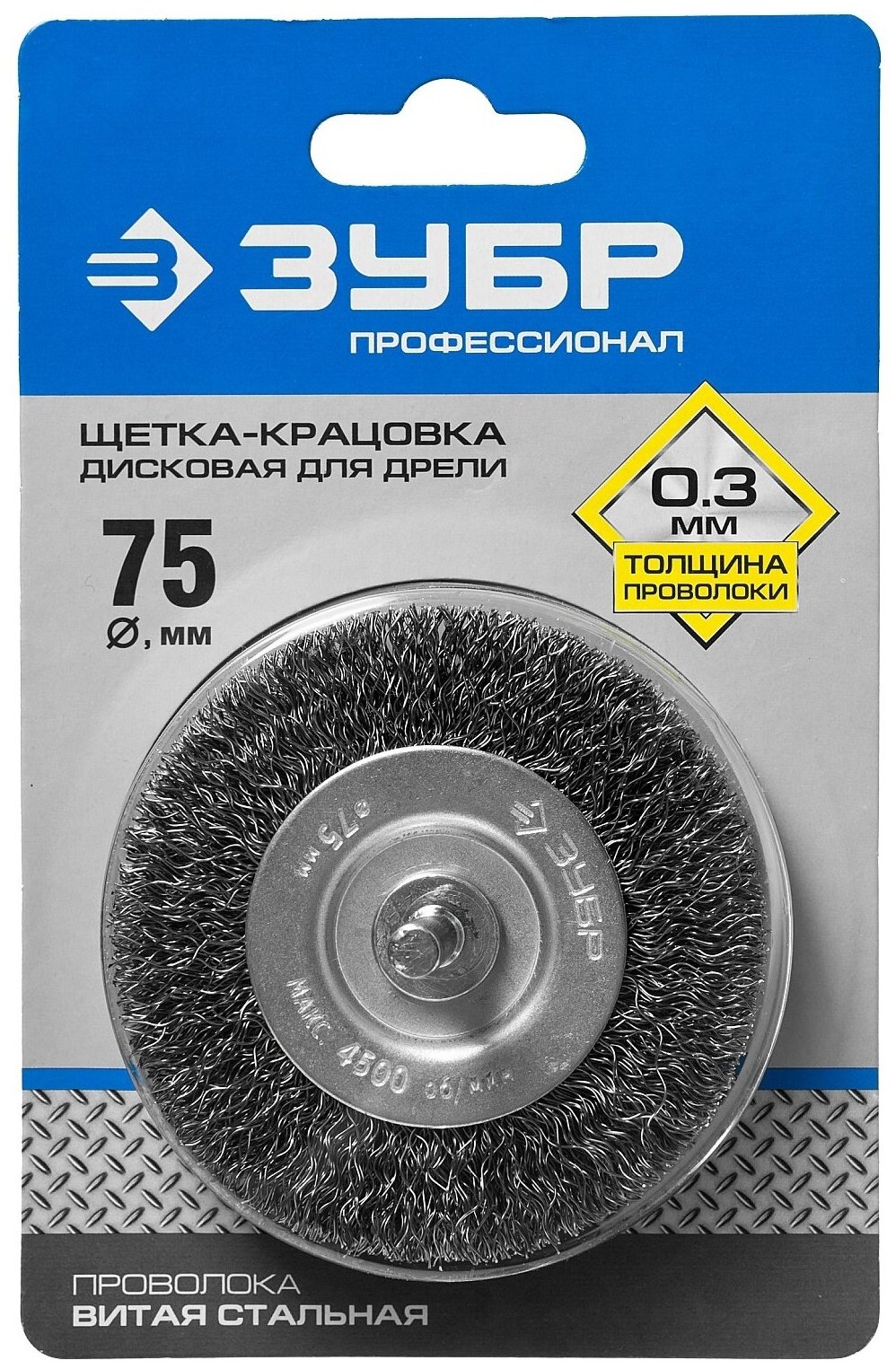 ЗУБР Профессионал. Щетка дисковая для дрели, витая стальная проволока 0,3мм, 75мм