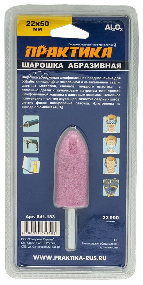 Отзывы на Шарошка абразивная ПРАКТИКА оксид алюминия, цилиндрическая заостренная 22х50 мм, хвост 6 мм, блистерблистер