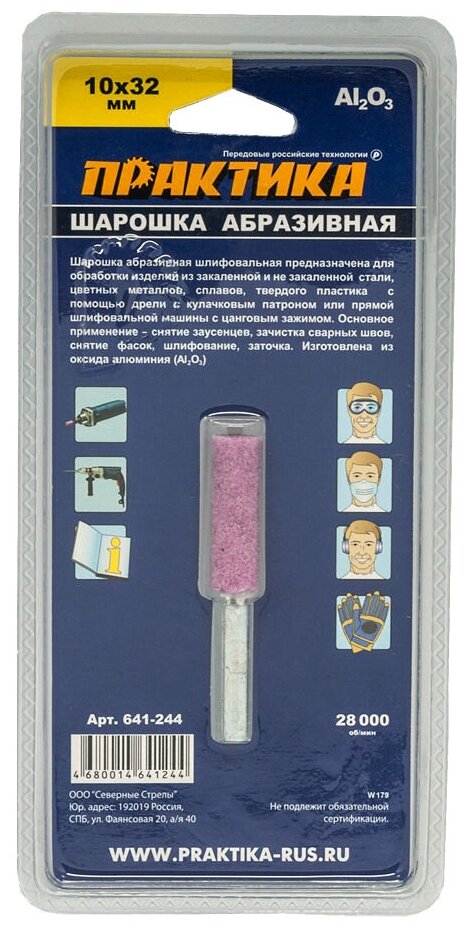 Шарошка абразивная цилиндрическая10х32 мм ПРАКТИКА 641-244 информация: