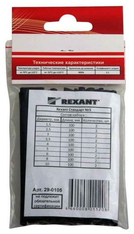 Термоусадочные трубки Rexant 29-0105 106 ₽
