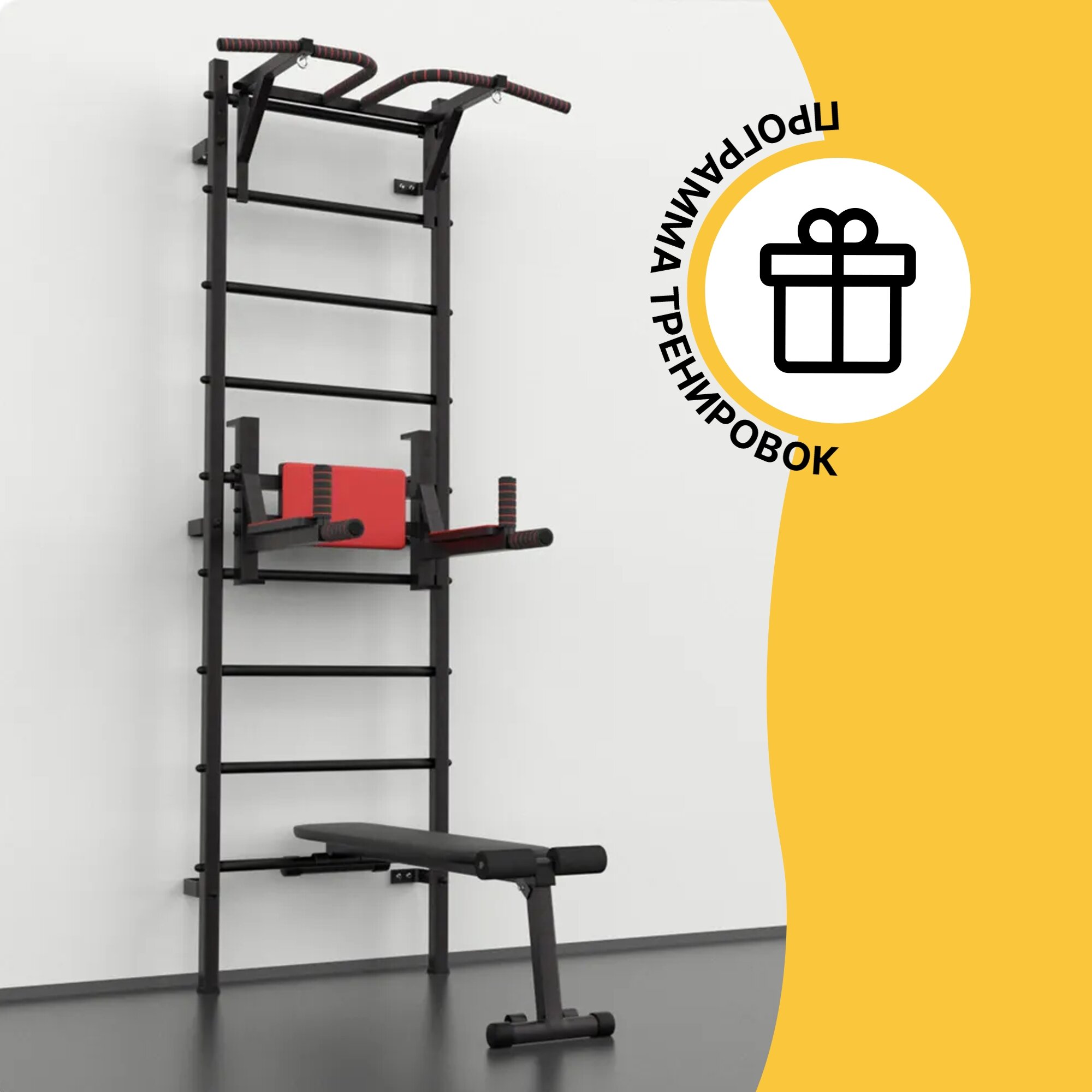 Шведская стенка с турником и брусьями. Спортивный комплекс со скамьей Богатырь 3в1