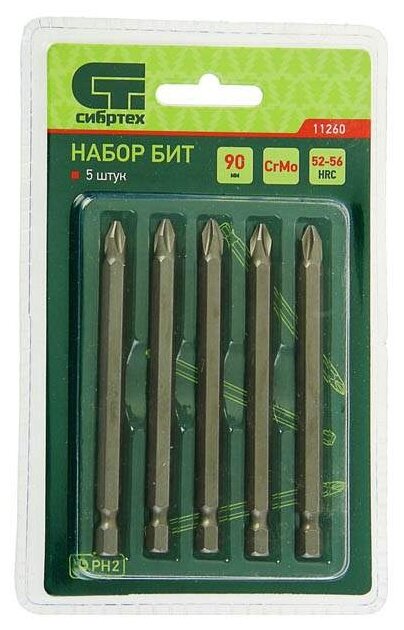 Набор бит PH2x90, сталь CrMo, 5 шт.// Сибртех 11260 информация: