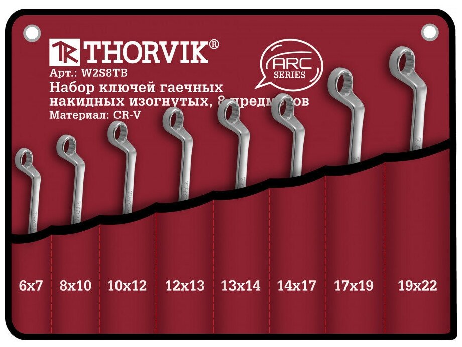 Набор гаечных накидных изогнутых ключей Thorvik W2S8TB серии ARC, 6-22 мм, 8 предметов