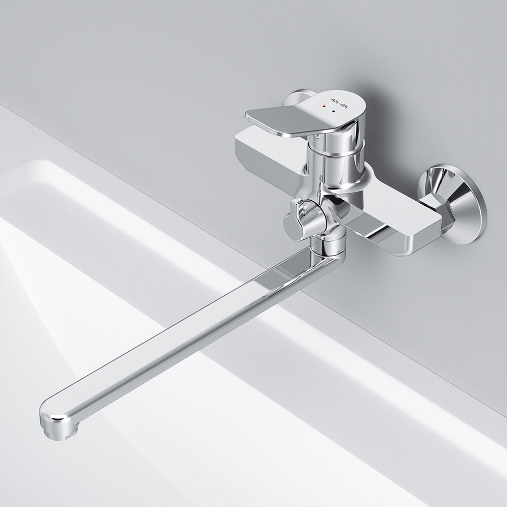 Смеситель для ванны AM.PM X-Joy хром, смесители для ванной с длинным изливом 350 мм, керамический картридж, латунь