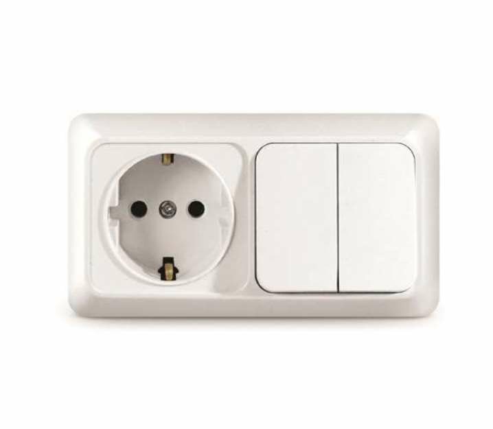 Universal Блок ОП Олимп 2-кл. вык.+ роз. с заземл. горизонт. бел. UNIVersal О0033
