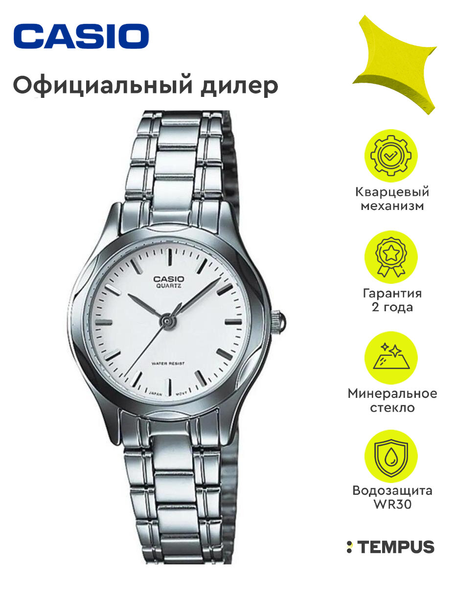 LTP-1275D-7B Casio наручные часы кварцевые WR30 (3 атм) женские серебряный минеральное стекло