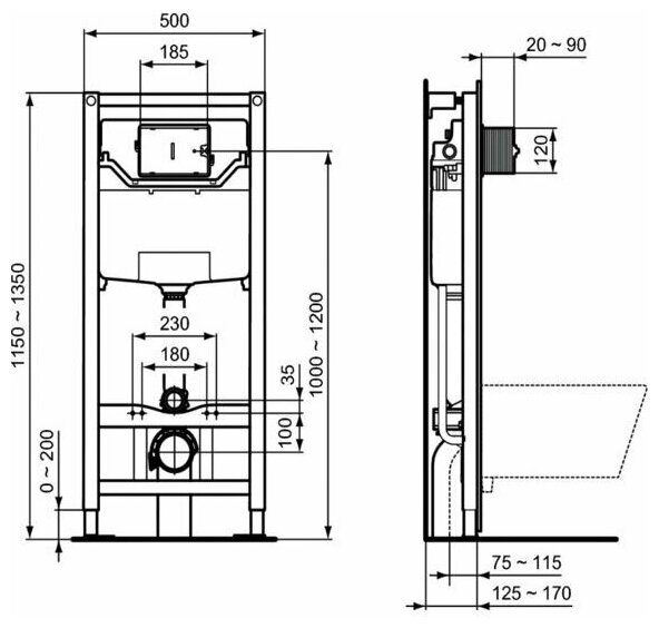 Отзывы на Инсталляция для подвесного унитаза Ideal Standard ProSys 120 M R020467
