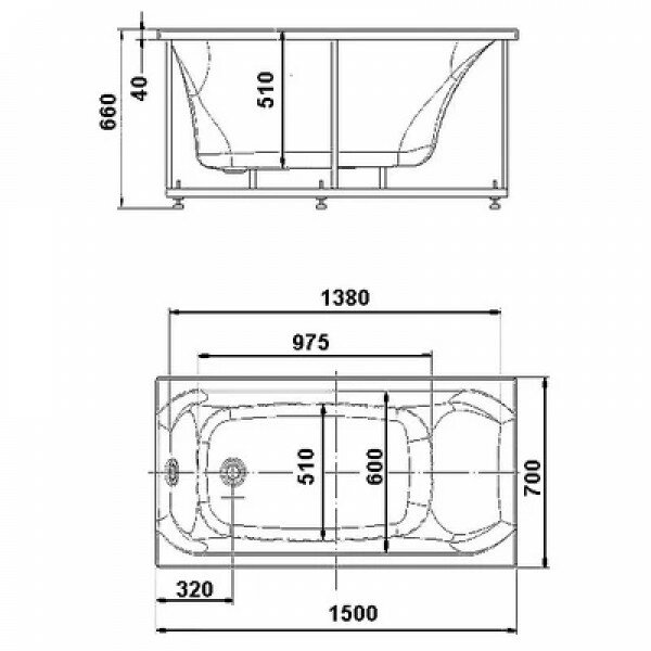 Ванна Gamma 140х70 см, акриловая, на каркасе, экран к ванне Gamma 140