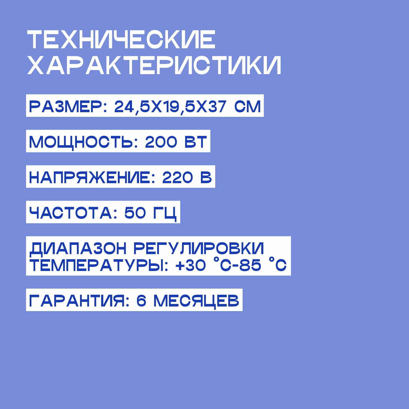 | Диапазон температур нагрева | 30-85 градусов Цельсия |