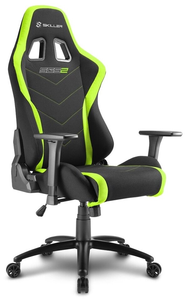 SKILLER-SGS2-BK/GN Sharkoon Skiller SGS2 Игровое кресло чёрно-зелёное (ткань, регулируемый угол накл