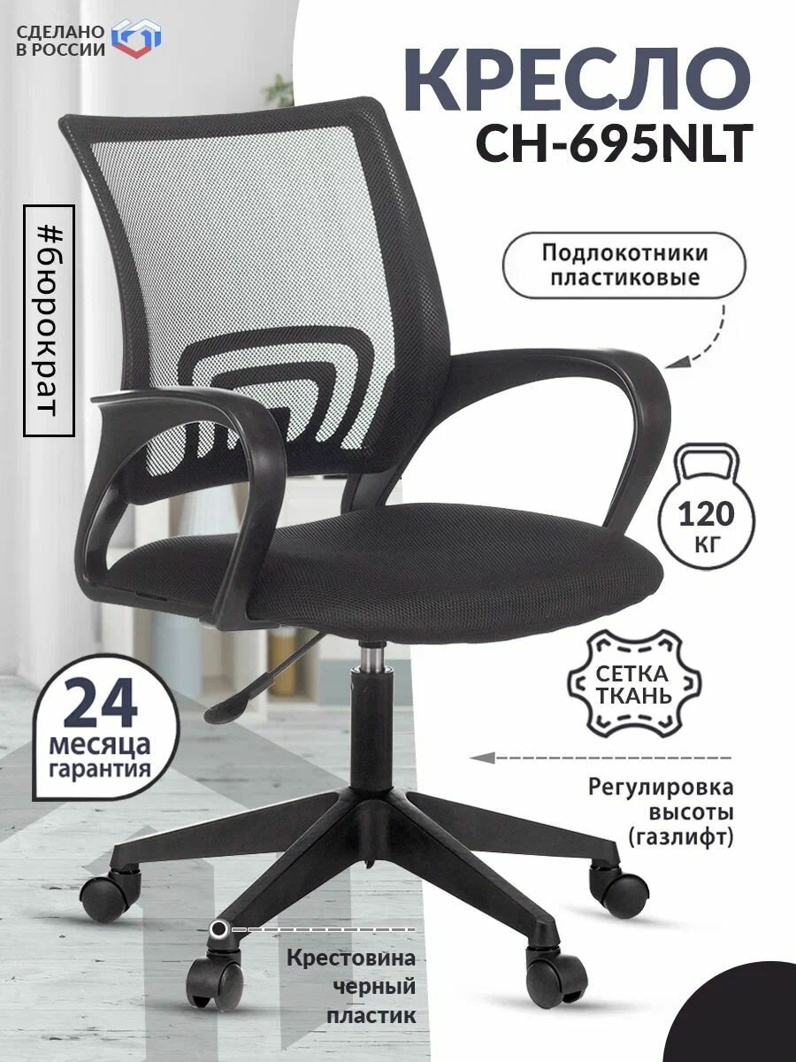 Кресло компьютерное Бюрократ CH-695NLT с газлифтом, Чёрный (ткань)/Чёрный (сетка)/Чёрный (пластик)