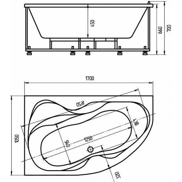 Ванна Gamma 140х70 см, акриловая, на каркасе, экран к ванне Gamma 140