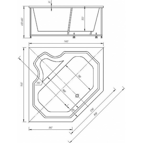 Ванна Gamma 140х70 см, акриловая, на каркасе, экран к ванне Gamma 140